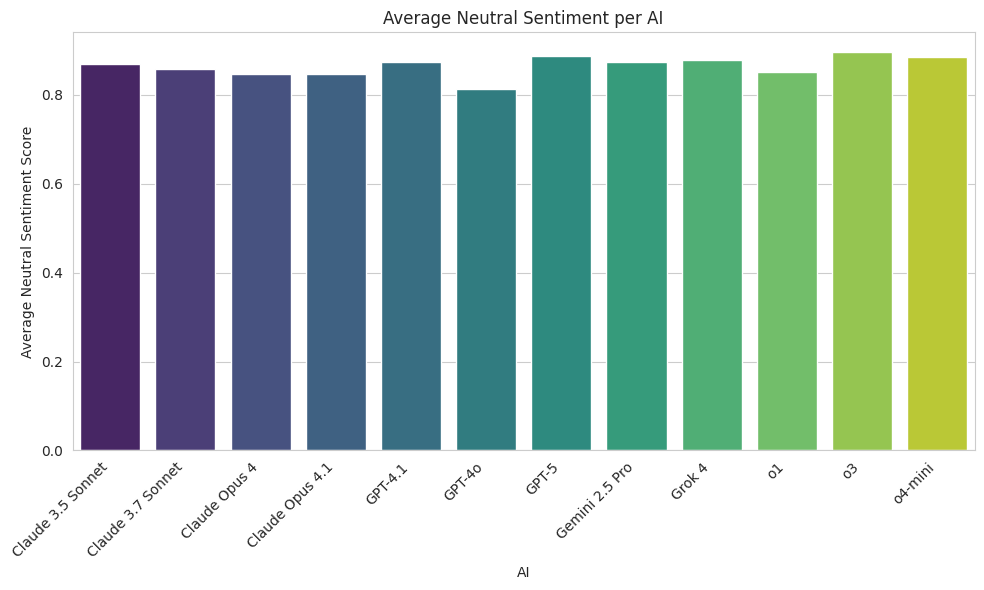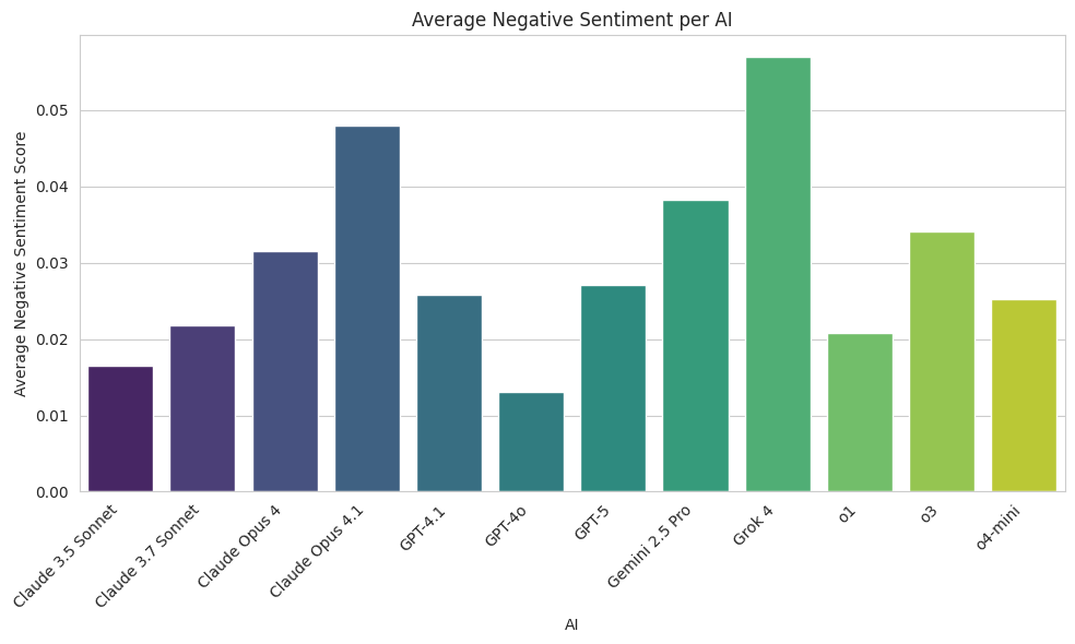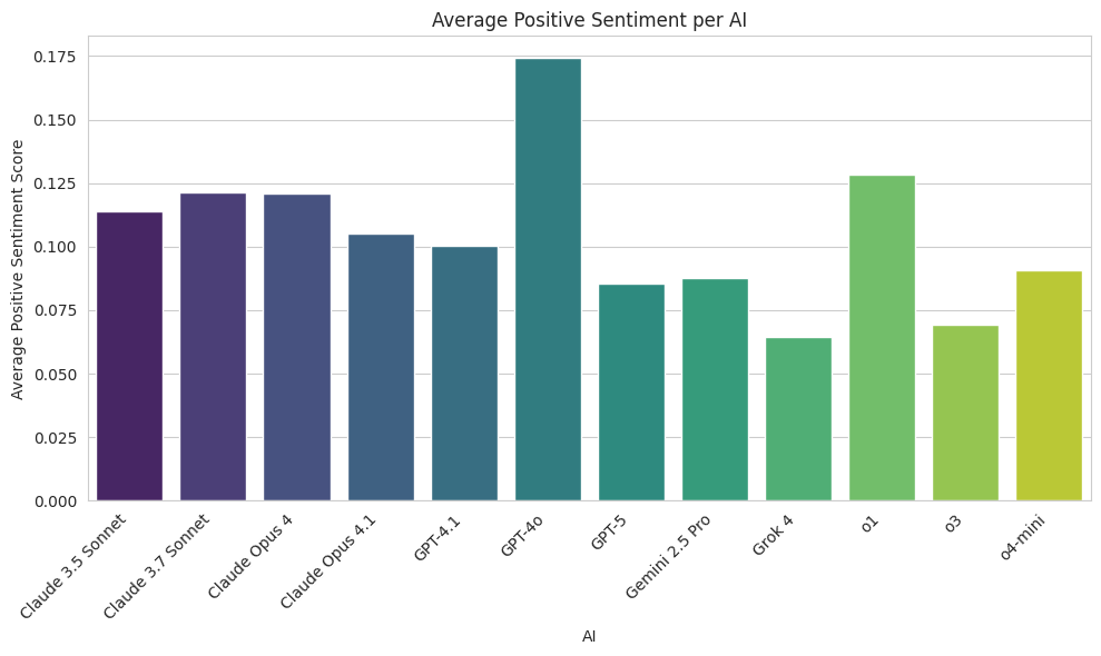 GPT-4o and o1 expressed the most positive sentiment, while Grok 4 expressed the least.